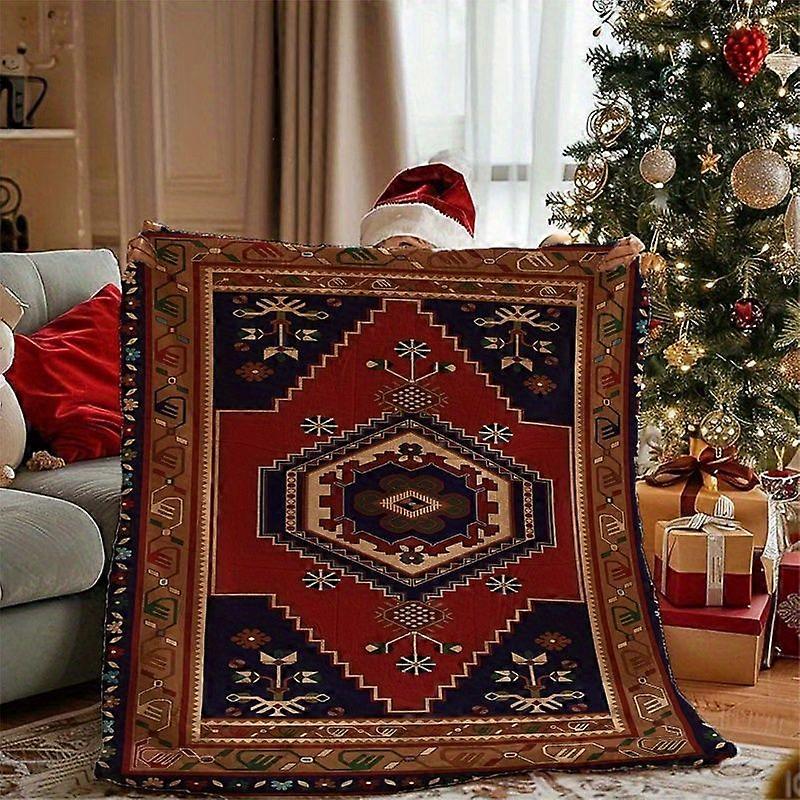 Persian Vintage Pattern Flannel Blanket - Lightweight All-Season Soft Throw for Bed, Sofa, Camping & Travel, Vibrant Red-LKJAS193