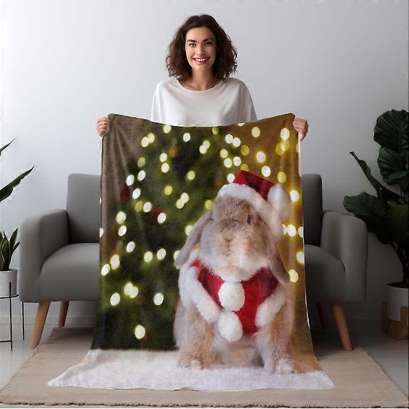 Cozy Holiday Scene Blanket with Christmas Bunny and Lighted Tree, Thick and Warm, Suitable for Sofa, Office Bed, Camping-FDSAP437