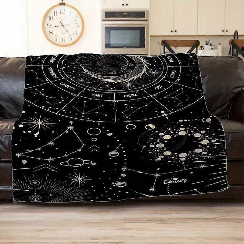 Moon & Stars Zodiac Print Flannel Blanket - Lightweight All-Season Soft Throw for Bed, Sofa, Camping, Office & Travel - -LKJAS149