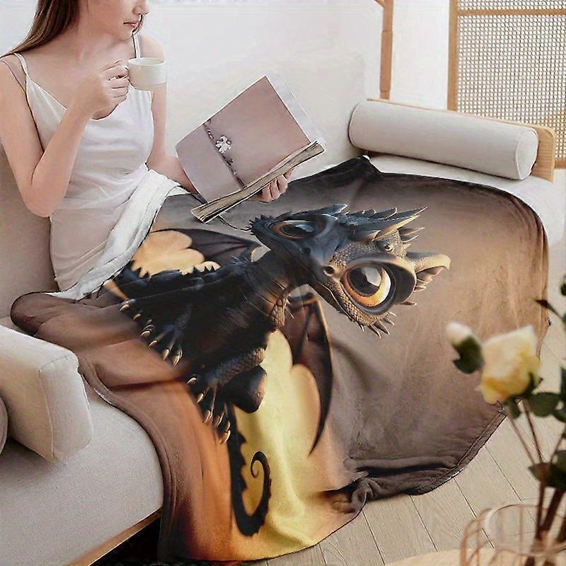 Simple Little Dragon Pattern Print Flannel Blanket - Soft Warm Multifunctional for Sofa, Bed, Car, Office, Camping - Per-LKJAS206