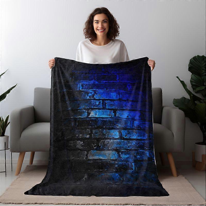 Blue Brick Wall Texture Print Flannel Blanket - Soft & Cozy Polyester Throw with Realistic Brick Design, Perfect for Bir-LKJAS217
