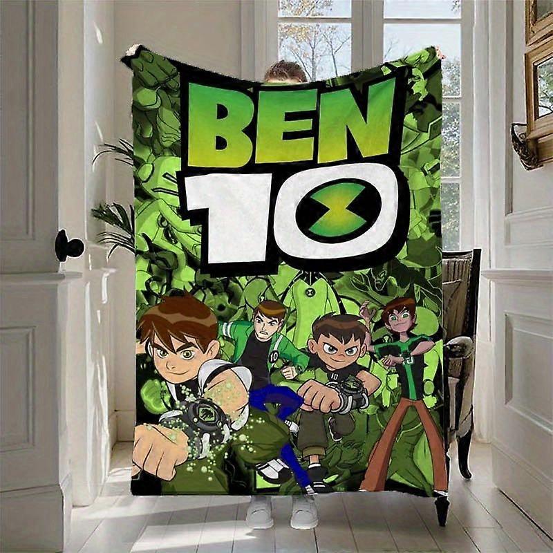 Ben 10 Anime-Inspired Fleece Blanket - Cozy All-Season Home Decor, Vibrant Cartoon Print with Ben 10 Characters, Perfect-LKJAS275