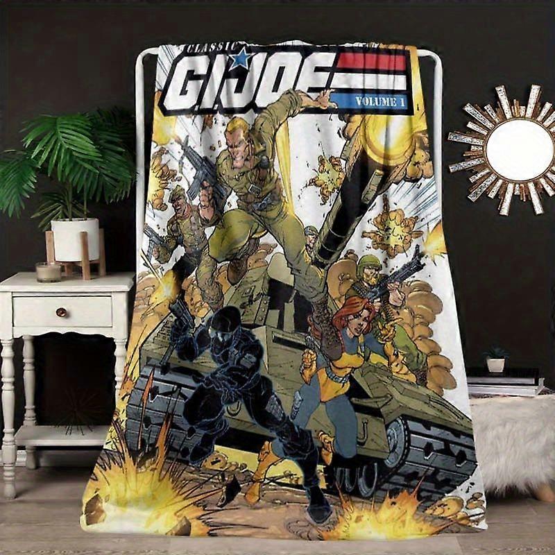 Classic GI Joe Themed Fleece Blanket - Vibrant Comic Book Art Print, Soft Polyester, All-Season Comfort Shawl Wrap for S-LKJAS246