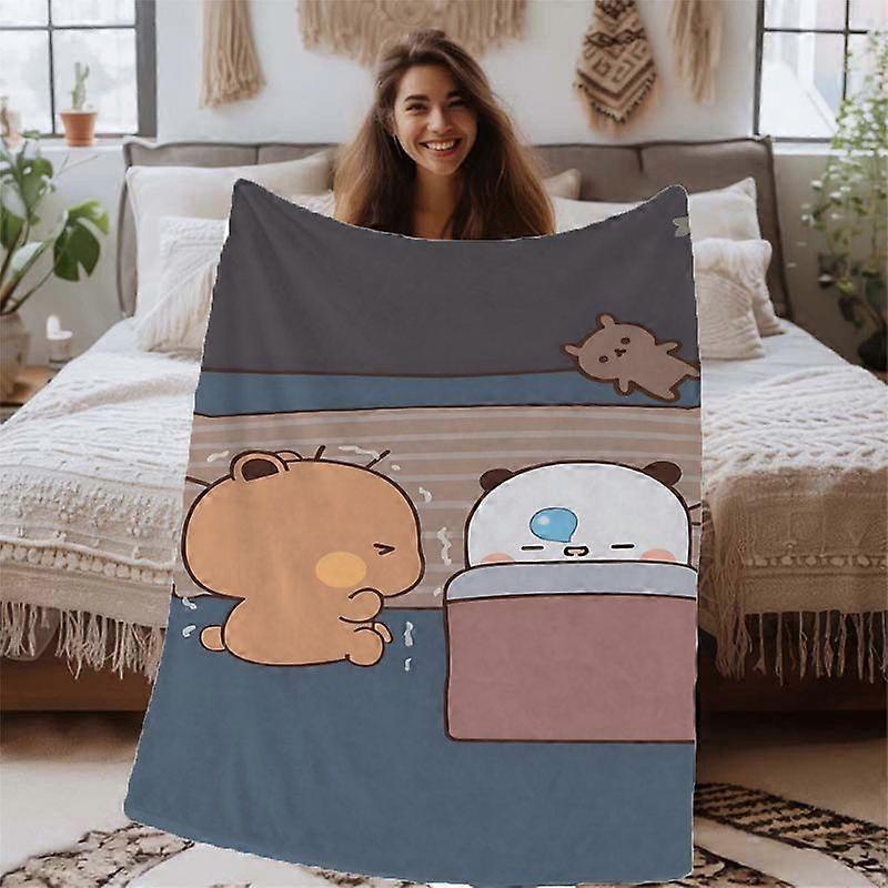 Bubu & Dudu Anime Flannel Blanket - Soft All-Season Throw with Cute Brown & White Bear Characters, Lightweight for Bed, -WSDCV29