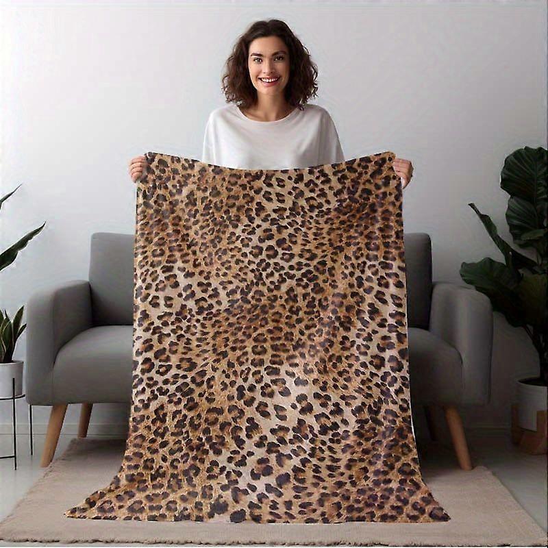 Vintage-Inspired Leopard Print Flannel Blanket - Cozy All-Season Knit Throw with Polyester Fiber, Perfect for Napping, C-LKJAS351