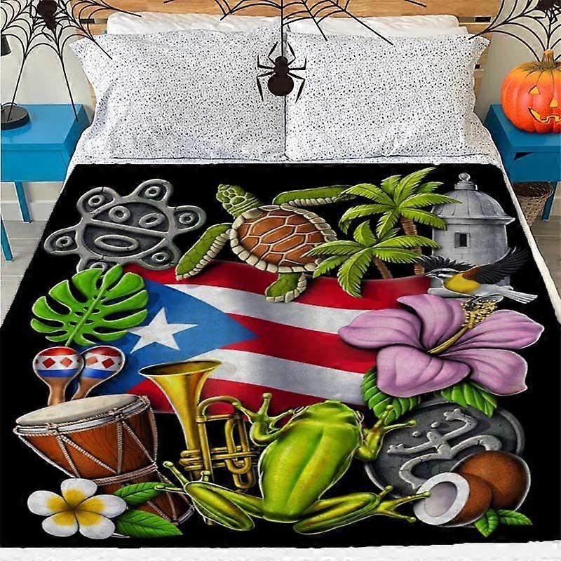 Colorful Puerto Rican-Themed Fleece Blanket - Cozy All-Season Shawl Wrap with Tropical Motifs for Sofa, Office, Travel --LKJAS326