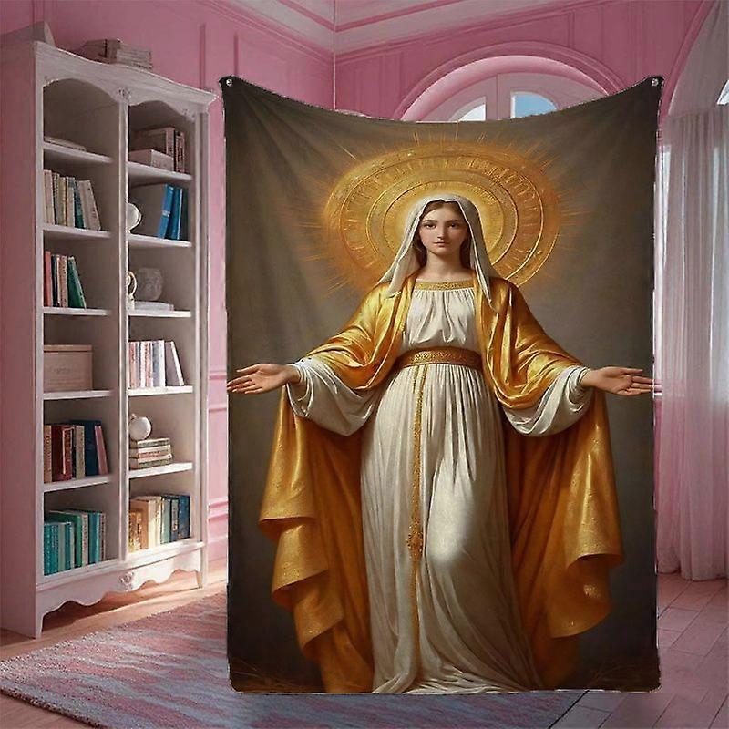 Golden Hues Virgin Mary Sacred Blessing Print Flannel Blanket - Modern Style, Polyester, Digital Printing, 250-300gsm, A-WSDCV139