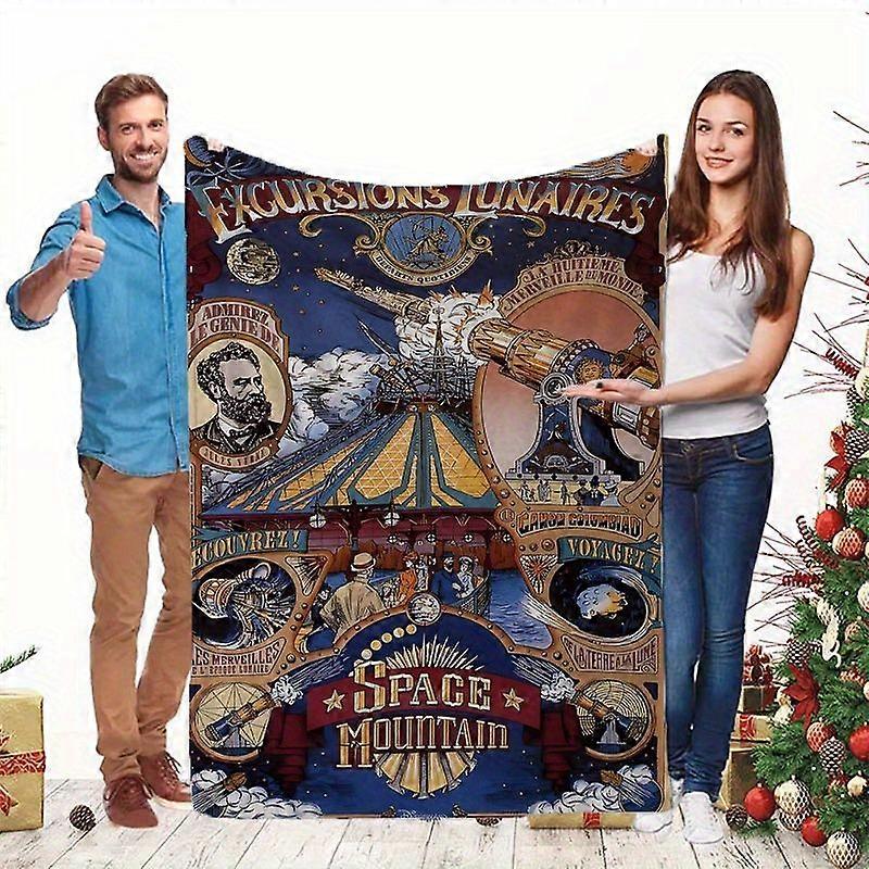 Retro Sci-Fi Space Mountain Adventure Print Flannel Blanket - Perfect for Friends, Bed, Car, Office, and Camping - Charm-WSDCV155