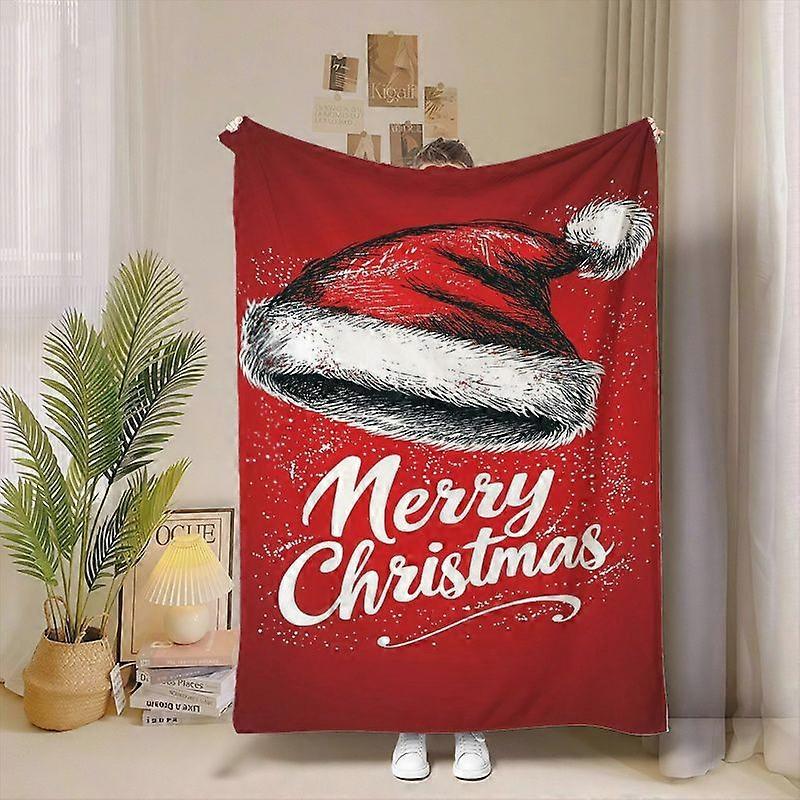 Cozy Red & White Christmas Blanket with Santa Hat & Holly Berry Design - Plush Flannel All-Season Soft Bedspread, Lightw-WSDCV175