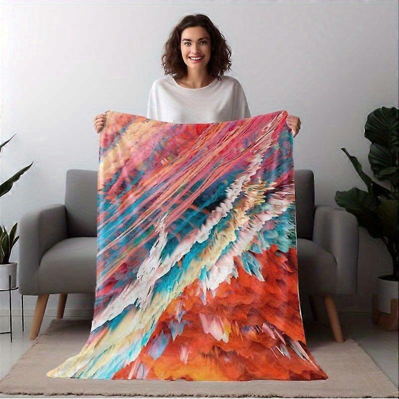 Colorful Abstract Flannel Throw Blanket - Extra Large, Polyester Knit, Machine Washable, Ideal for Bed & Sofa, All-Seaso-WSDCV400