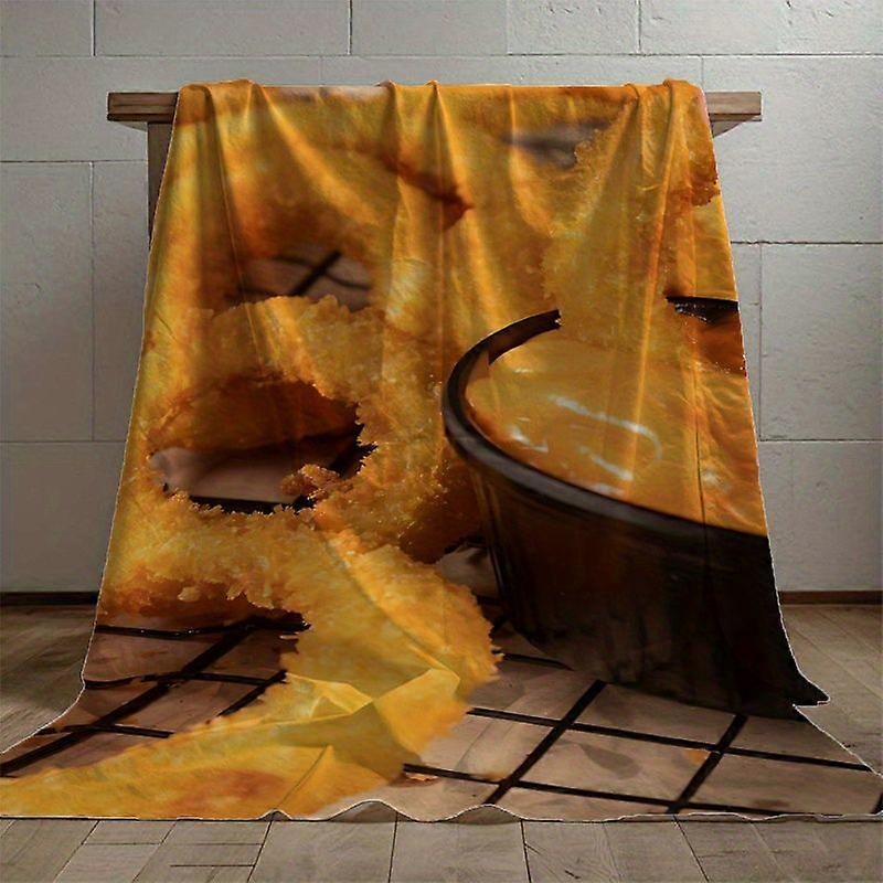 Golden Yellow Crispy Onion Rings with Dipping Sauce Print Flannel Blanket - Cozy Bedding, Sofa, Travel, Camping, Nap, Ho-TREAX44