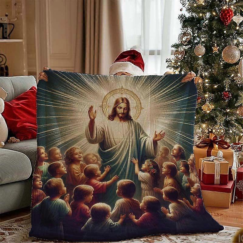 Inspirational Religious Quote Fleece Blanket - Cozy All-Season Shawl Wrap with Vibrant Nativity Scene Print, Perfect for-TREAX59