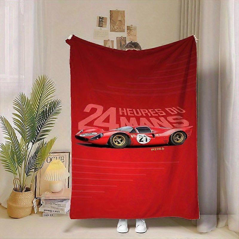 24 Heures du Mans 1966 Vintage Racing Blanket - Red & White /Le Mans Logo Design with No.2 -like Car - Soft Flannel All--TREAX30