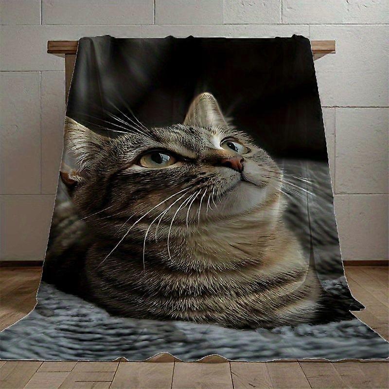 Brown Tabby Cat Print Flannel Blanket - Soft All-Season Cozy Throw for Bed, Sofa, Travel & Camping - Durable Machine-Was-TREAX283