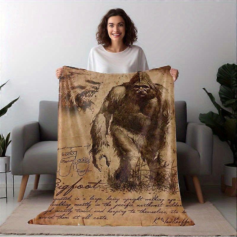 Vintage Gorilla Print Flannel Throw Blanket - Soft, Cozy Polyester Knit for Travel, Sofa, Bed & Home Decor - Ideal Birth-TREAX255