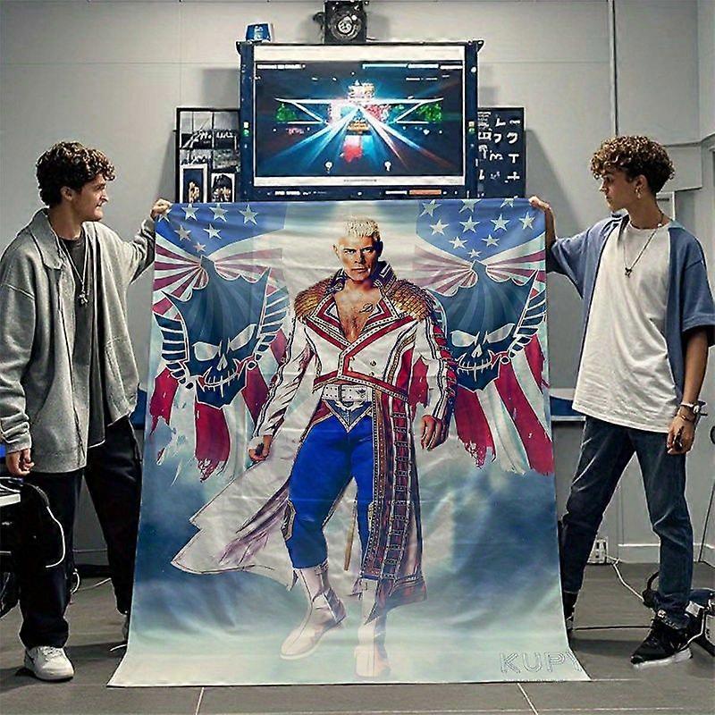 Glam Wrestling Fan Blanket with Skull & American Flag Design - Flannel Throw for All-Season Comfort, Perfect for Sports,-TREAX258