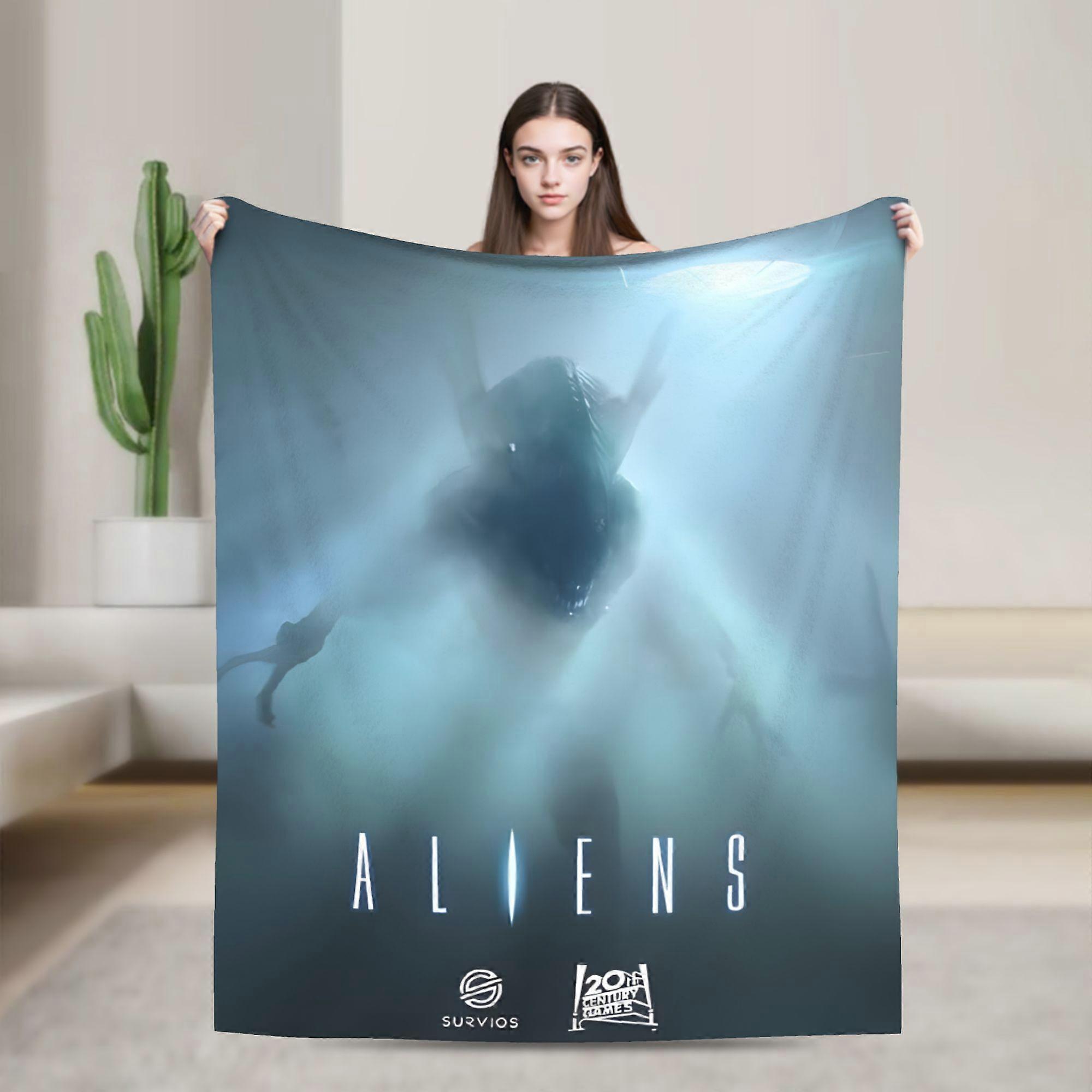 Aliens Movie-Themed Blanket with Iconic Xenomorph Logo & Sigourney 's Name Print - Soft Flannel All-Season Couch Bedspre-KJAZX189