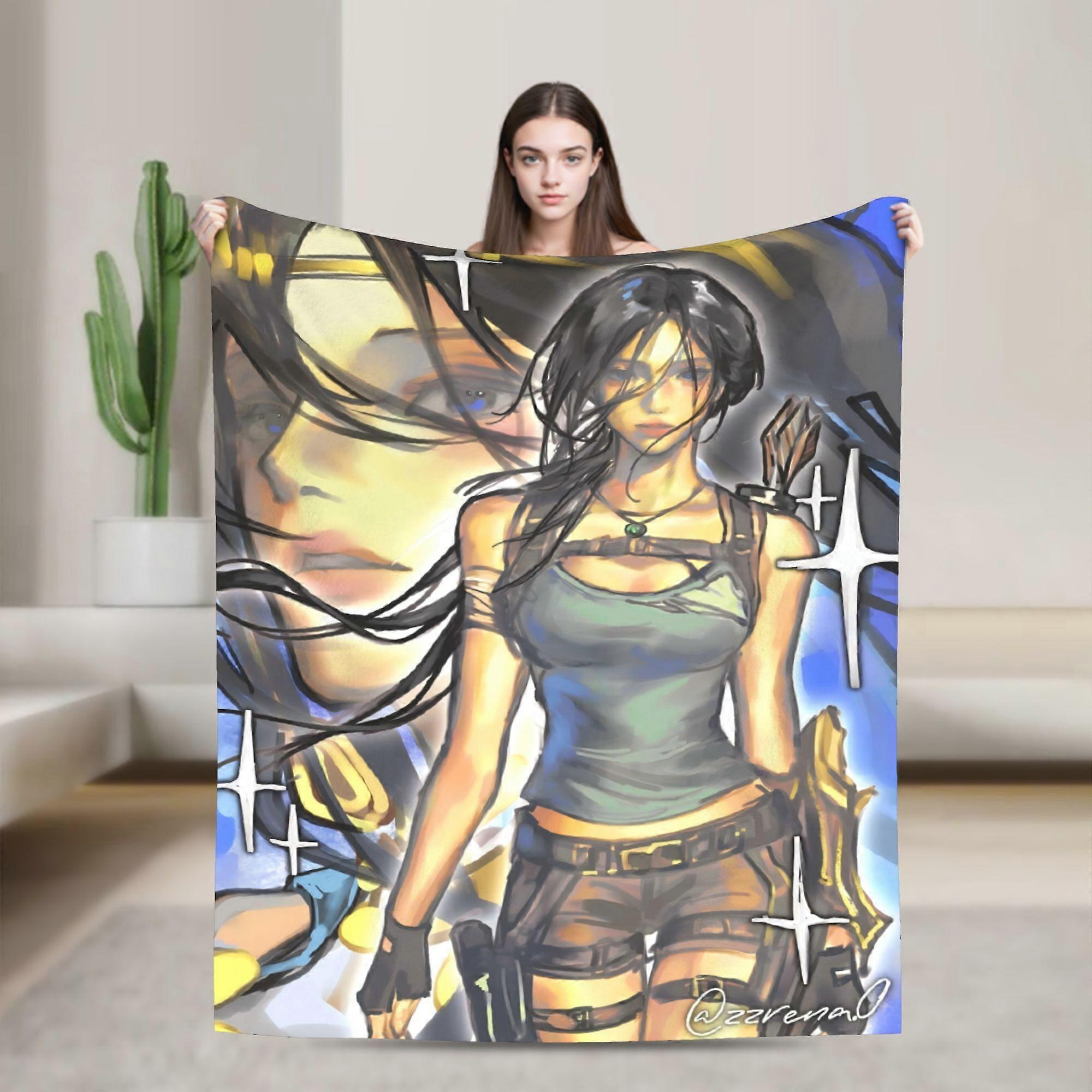 Lara Croft Inspired Throw Blanket - Soft Flannel All-Season Luxury Bedspread with Vibrant Character Art, Lightweight & F-KJAZX180