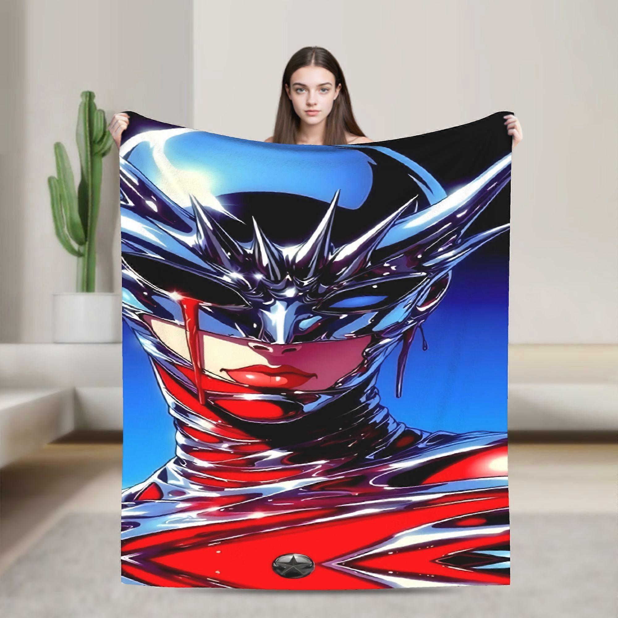 Anime Manga Female Warrior Blanket - Manga-Style Female Heroine with Sword & Iconic Red Eyes, Soft Flannel All-Season Co-KJAZX259
