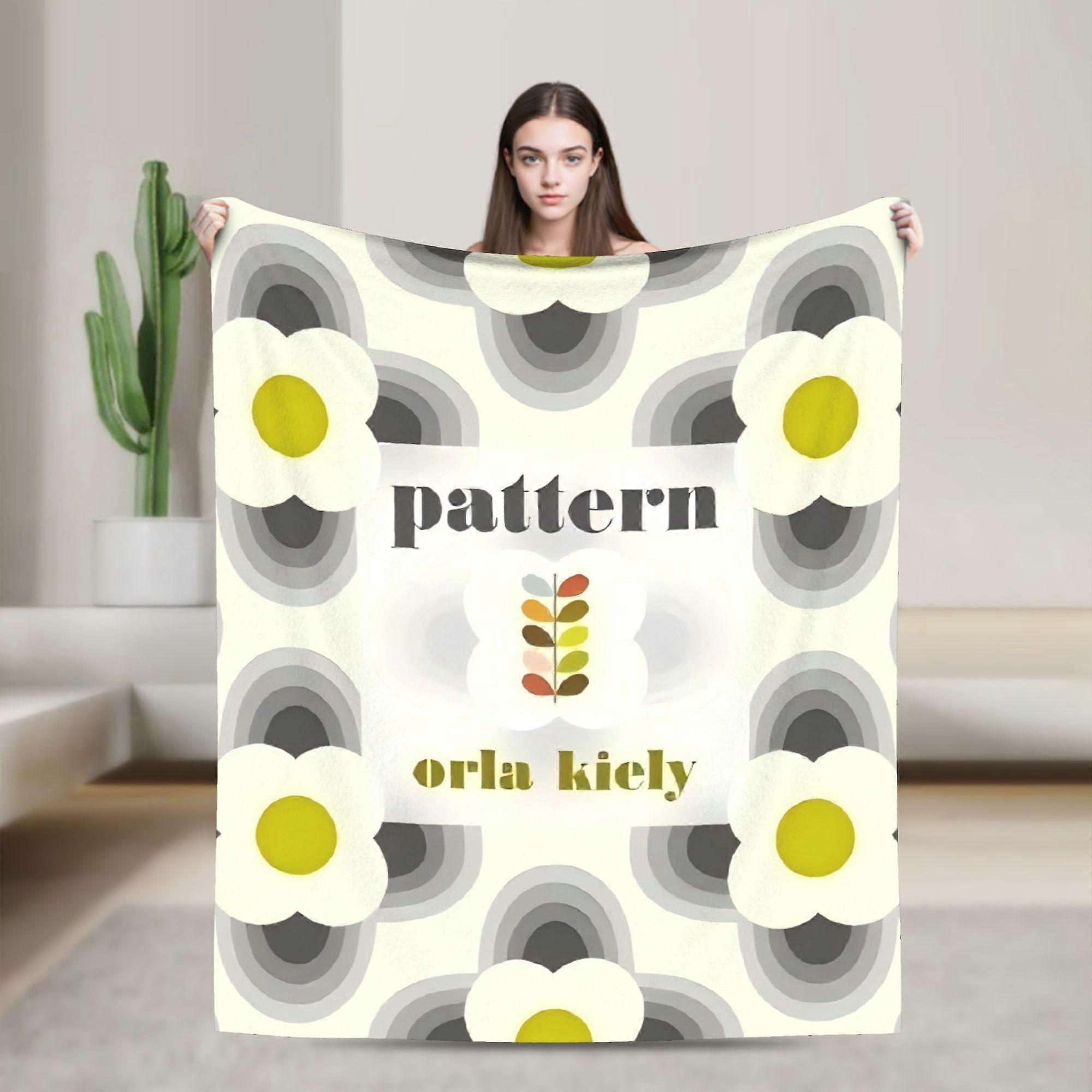Orla Kiely Iconic White/Yellow/Gray/Beige/Black/ Throw Blanket - Soft Flannel All-Season Sofa Bedspread, Office & Travel-PQAGF285