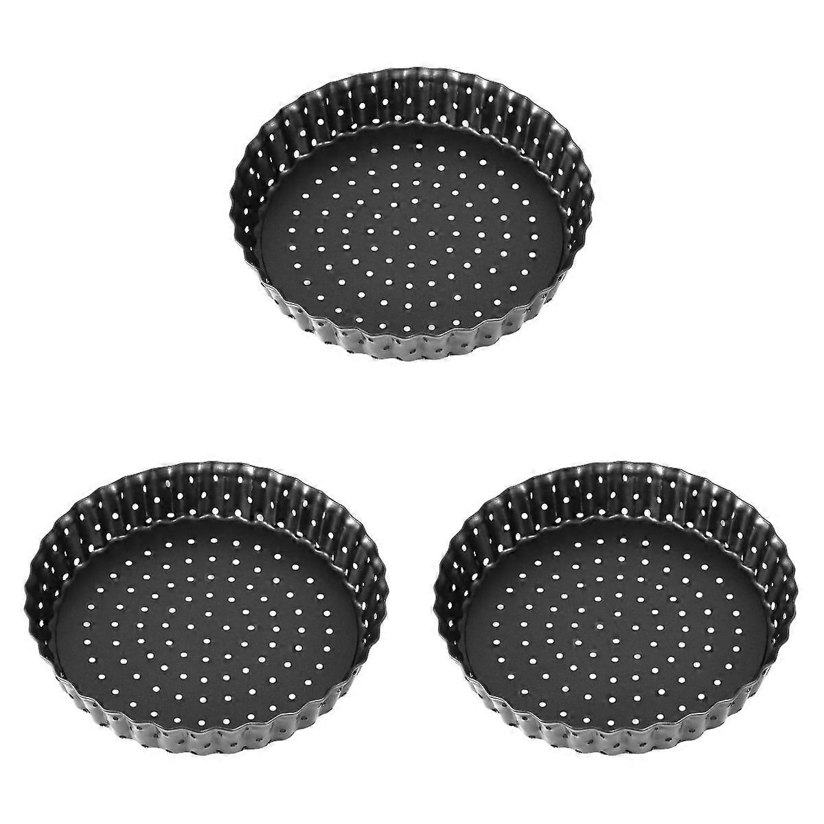 3pcs Non-Stick Pizza Pan with Holes Round Baking Tart Mould Removable Bottom Pie Tray (Small, 5inch)