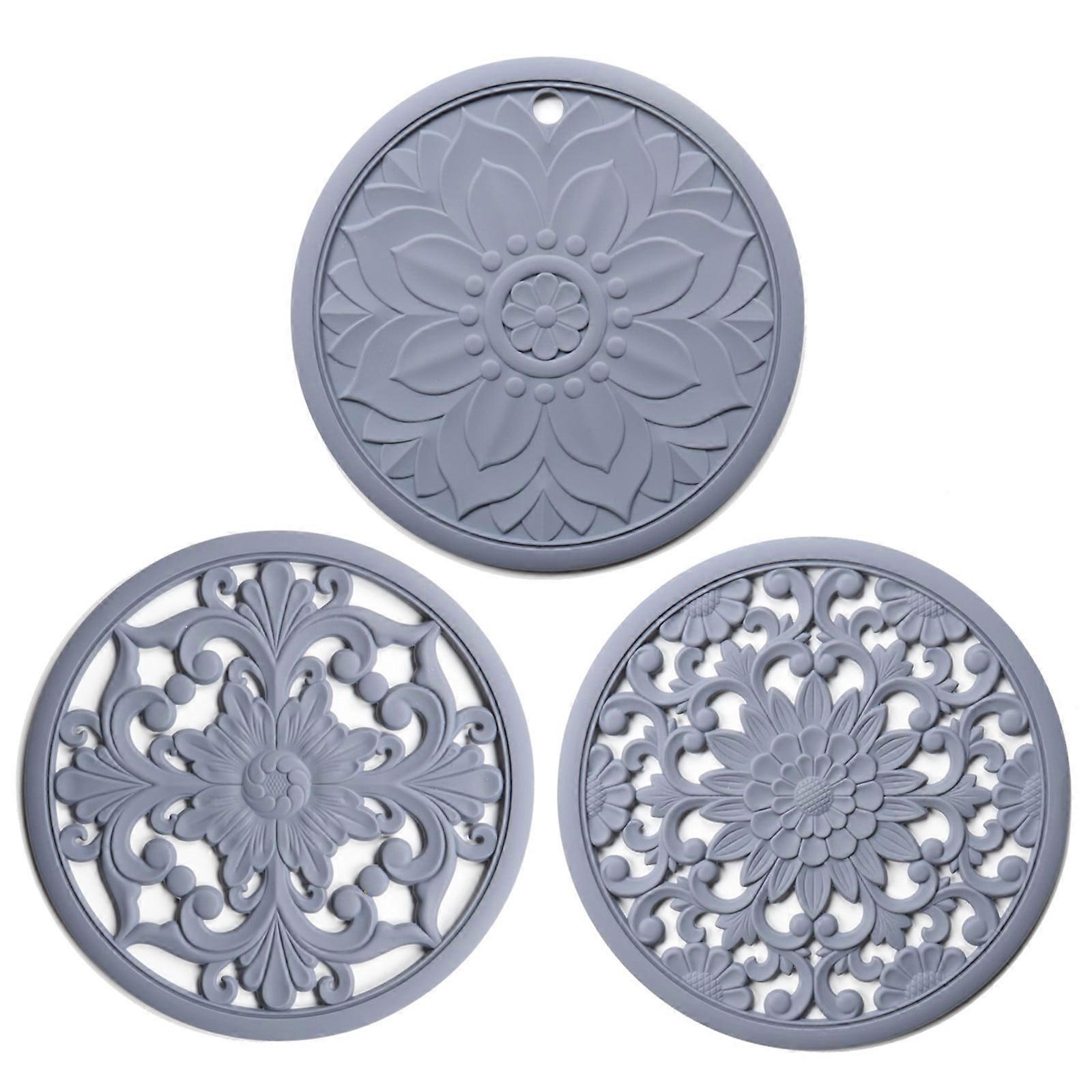 RnemiTe-amo Deals!Kitchen Tools Kitchen Supplies Non-slip Carved Potholders Kitchen Heat Protection Pad for Countertop Set of 3