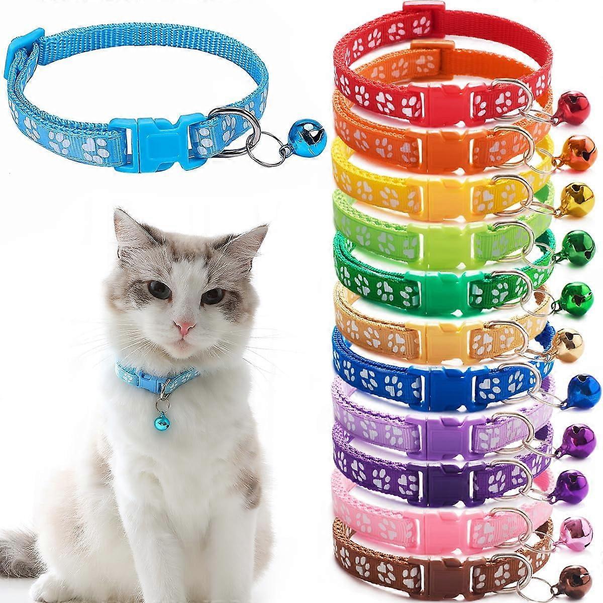 12 Pack Puppy Collars for Litter, Adjustable Breakaway with Bell, Soft Paw Print Nylon for Small Dogs