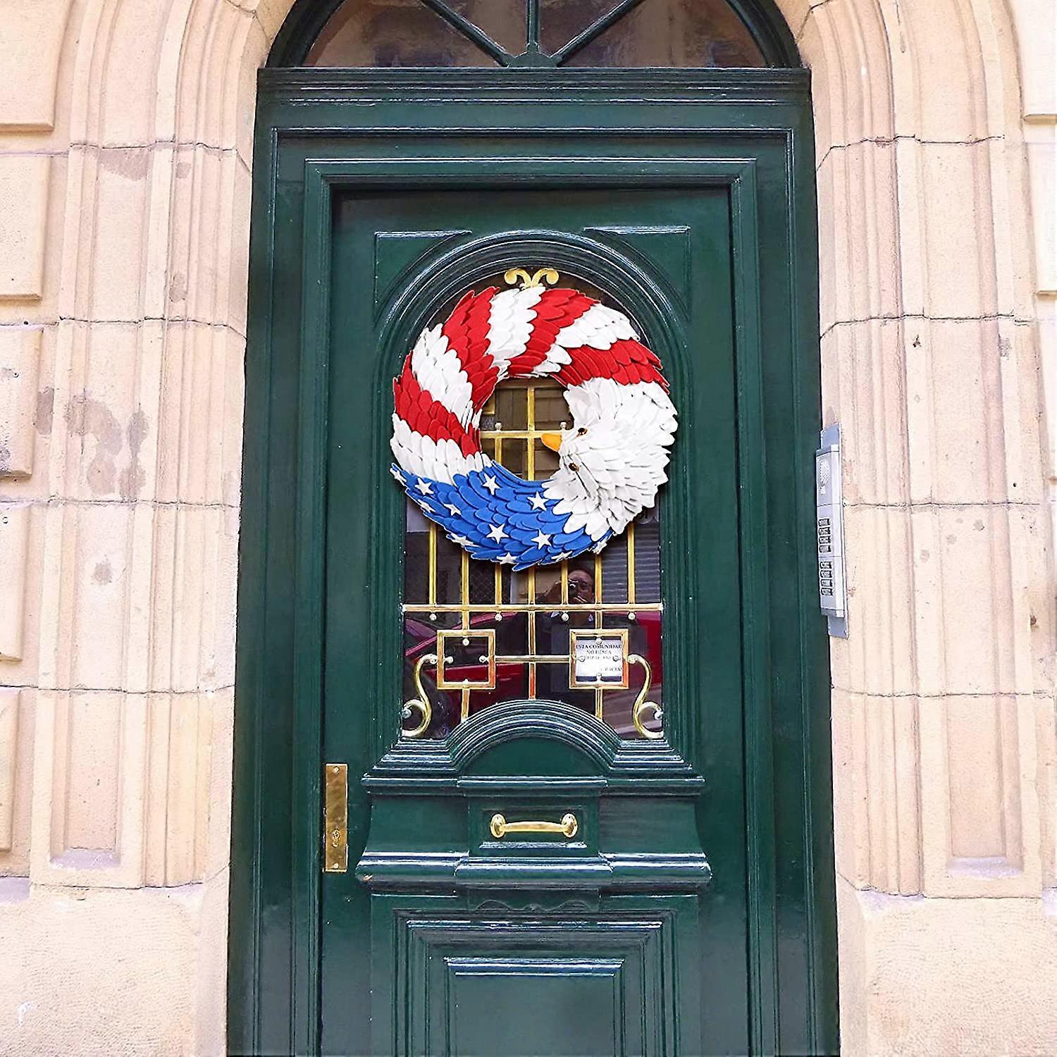 Patriotic Wreath, American Flag Independence Day Decoration, Red White Blue 4th of July Wreath for Door/Wall/Indoor/Outdoor, Summer Farmhouse Decor