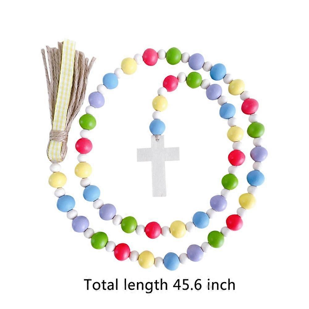 Easter Wooden Bead Garland with Jesus Cross Ornaments, Prayer Bead for Holiday Decor, Fireplace Hanging, Tiered Tray, Party Gifts