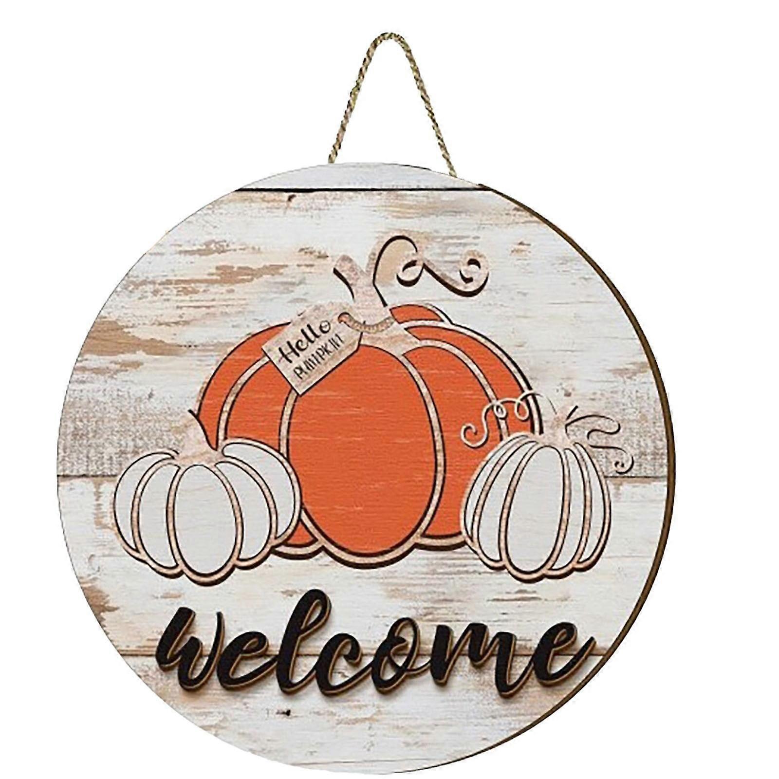 Welcome Wood Door Hanger, Fall Pumpkin Farmhouse Porch Sign, Rustic Autumn Outdoor Plaque Decor Compatible with Fall Home Decor