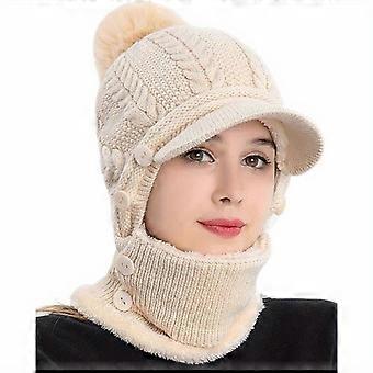 1PC Winter Women's Pullover Ear Warmer Hat Scarf Mask Combo �C Thick Fleece-Lined Knitted Ski Cap for Cold Weather, Cable Pattern Beanie with