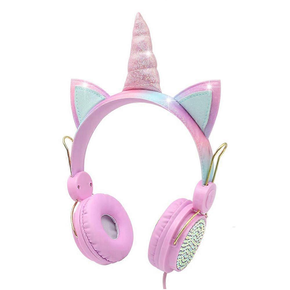 Unicorn Kids Pink Headphones for Girls Children Teens Wired Headset w/Microphonefor School Birthday Xmas Unicorn Gift