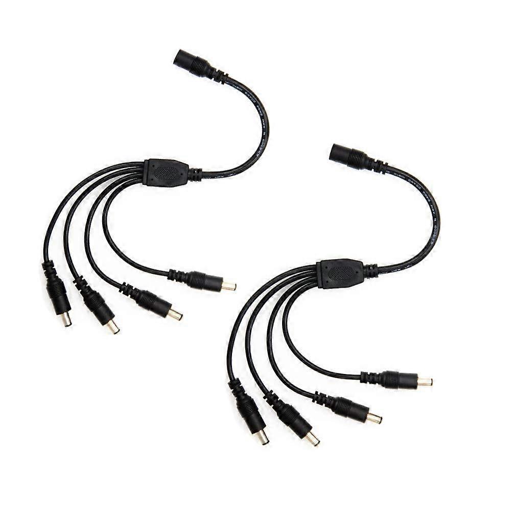 2 Pack Black 1 Female to 4 Male 5.5mm X 2.1mm CCTV DC Power Supply Splitter Cable