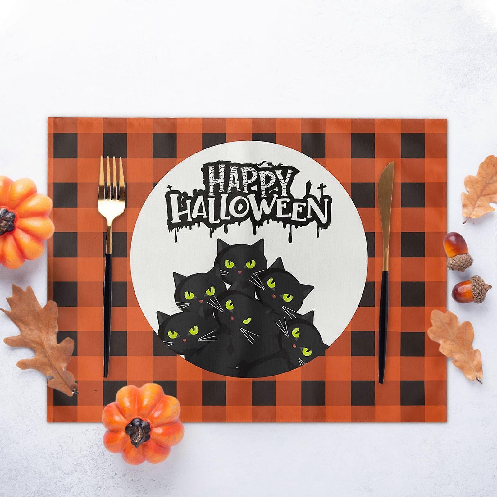 Halloween Placemats Table Decor - Digital Print Heat Insulating Mats, Linen Tablecloths, Party Coffee Table Decorations Indoor