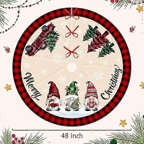Christmas Tree Skirt - Snowman Design, 36 Inch Red Rustic Country Xmas Decor for Indoor Outdoor Holiday Party Use