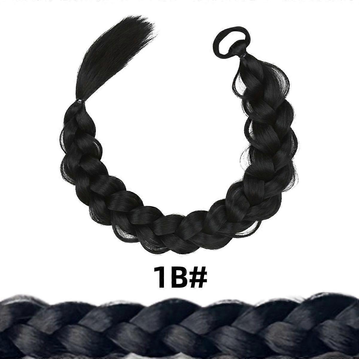 24 Inch Long Black Synthetic Braided Ponytail Hair Extension with Rubber Band for Women Hair Accessories Boxing Braids