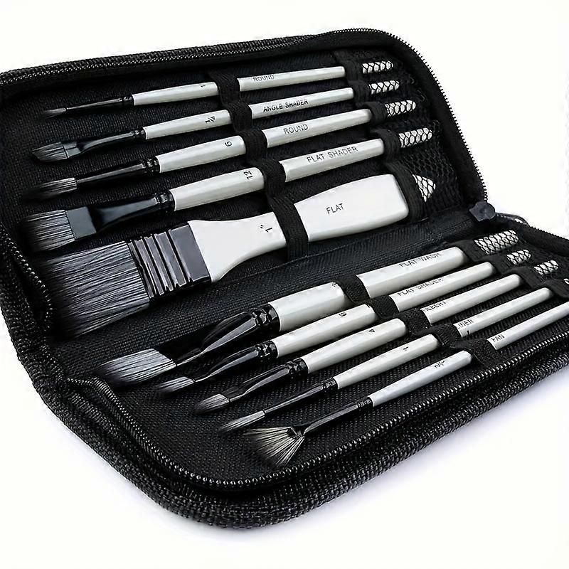 10pcs Artist Paint Brush Set with Carrying Case for Watercolor Acrylic Gouache Oil and Tempera Face Painting