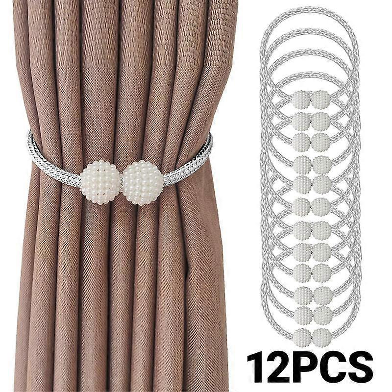 (Buckle Design) 6pcs Vintage Style Pearl Curtain Tiebacks, Snap Curtain Cord Closure Strap Plastic Woven Design, Firm Snap Design, No Drilli