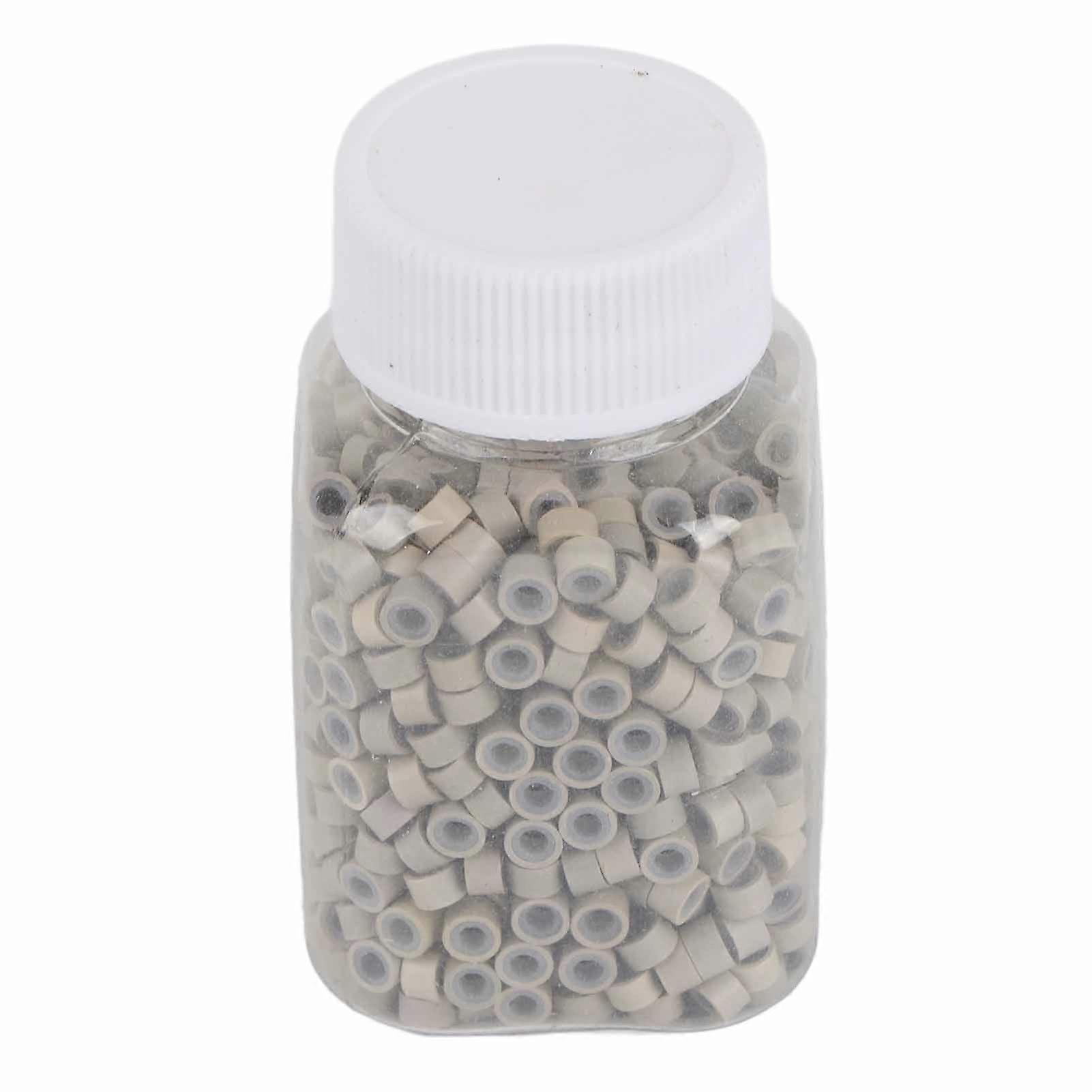 Dekaim 1000PCS/Bottle 5MM Silicone Hair Extension Rings Loops Beads Tools for Human Hair 5 Colors (Beige)