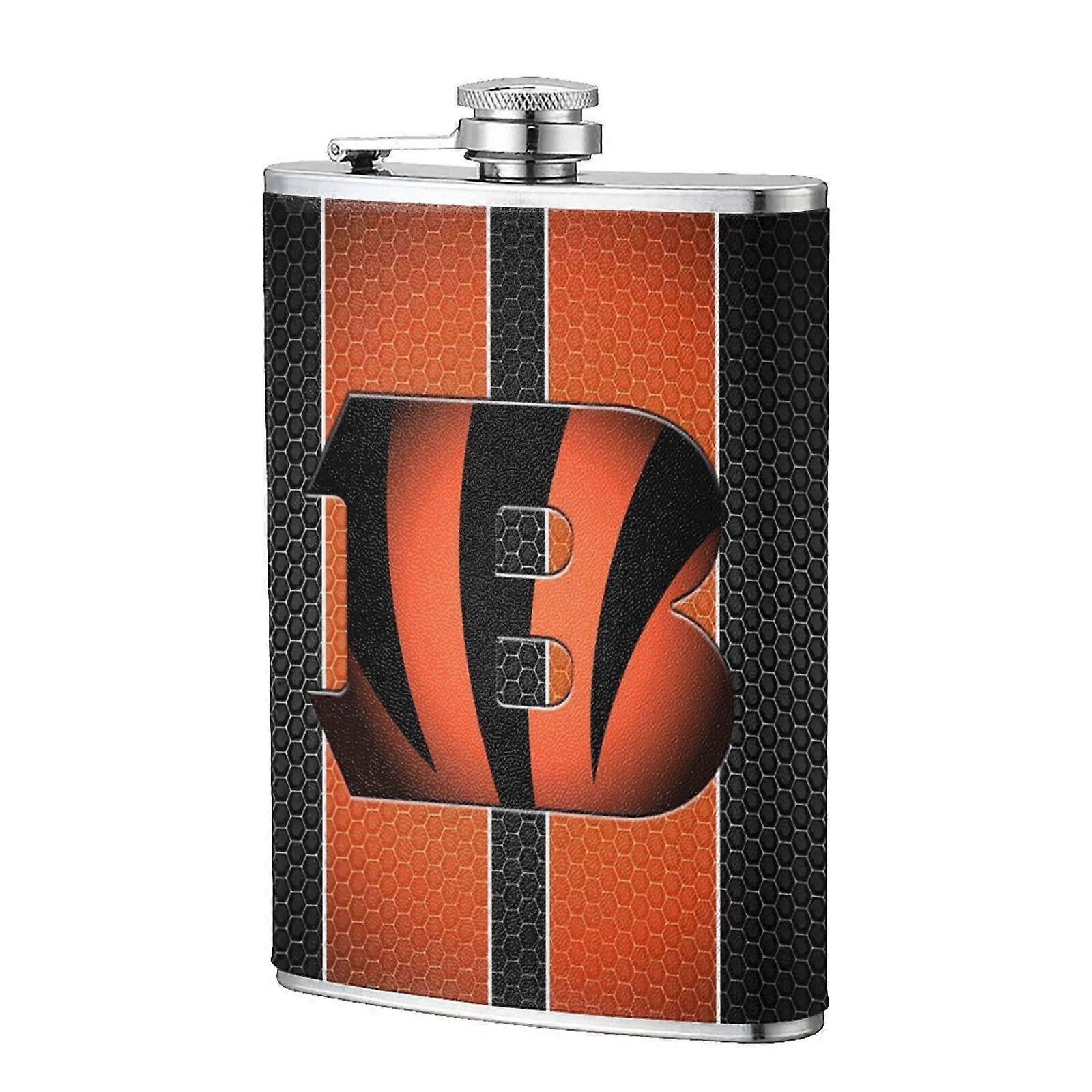 Bengals Flagon 8oz Stainless Steel Leather Flask - Food-grade, Portable, Wearproof for Men, Outdoor, Camping, Wedding (Compatible with)