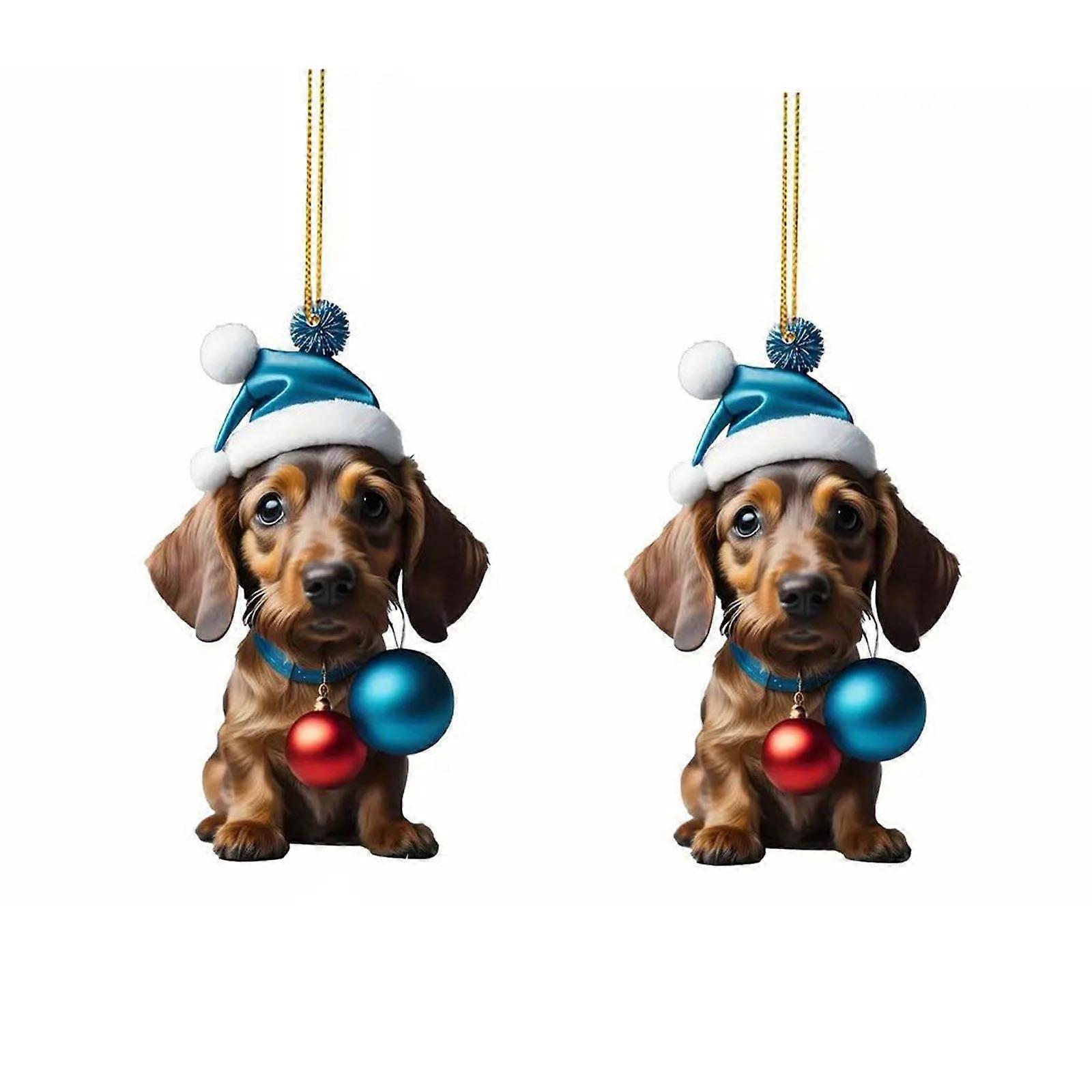 Luckky 2 Pcs Acrylic Christmas Dachshund Ornaments, Adorable Sausage Dog Pendant, Modern Simplicity Decor for Tree, Home, Holiday Party
