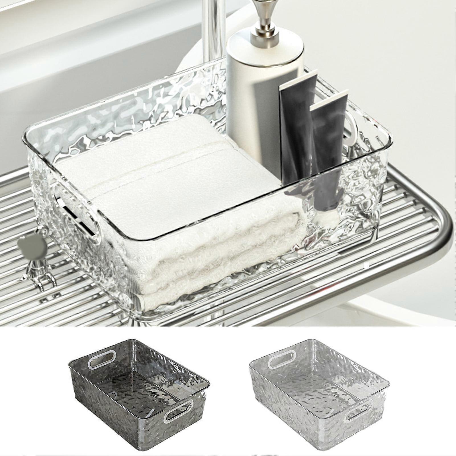 Description: A storage box has a grain design on the surface, which is beautiful and exquisite in workmanship. Because it has a non-slip base, it is placed stably and is not easy to fall over. There is a large capacity in this storage box, which can store cosmetics, snacks, toys, magazines, kitchen supplies, sundries and so on. It has a handle design for easy lifting and moving. It is constructed of pet, abs material. This product is 27 cm in length, 20 cm in width and 10.5 cm in height. It is suitable for household, jewelry stores, bedrooms, living rooms, study rooms, bathrooms and so on. Item Name: Storage Box Material: PET, ABS Features: Non-slip Base, Transparent, Large Capacity Size Details: Size: 27cm x 20cm x 10.5cm/10.63" x 7.87" x 4.13" (Approx.) Notes: Due to the light and screen setting difference, the item's color may be slightly different from the pictures. Please allow slight dimension difference due to different manual measurement. Package Includes: 1 x Storage Box A storage box has a grain design on the surface, which is beautiful and exquisite in workmanship. Because it has a non-slip base, it is placed stably and is not easy to fall over. There is a large capacity in this storage box, which can store cosmetics, snacks, toys, magazines, kitchen supplies, sundries and so on. It has a handle design for easy lifting and moving. It is constructed of pet, abs material. This product is 27 cm in length, 20 cm in width and 10.5 cm in height. It is suitable for household, jewelry stores, bedrooms, living rooms, study rooms, bathrooms and so on.