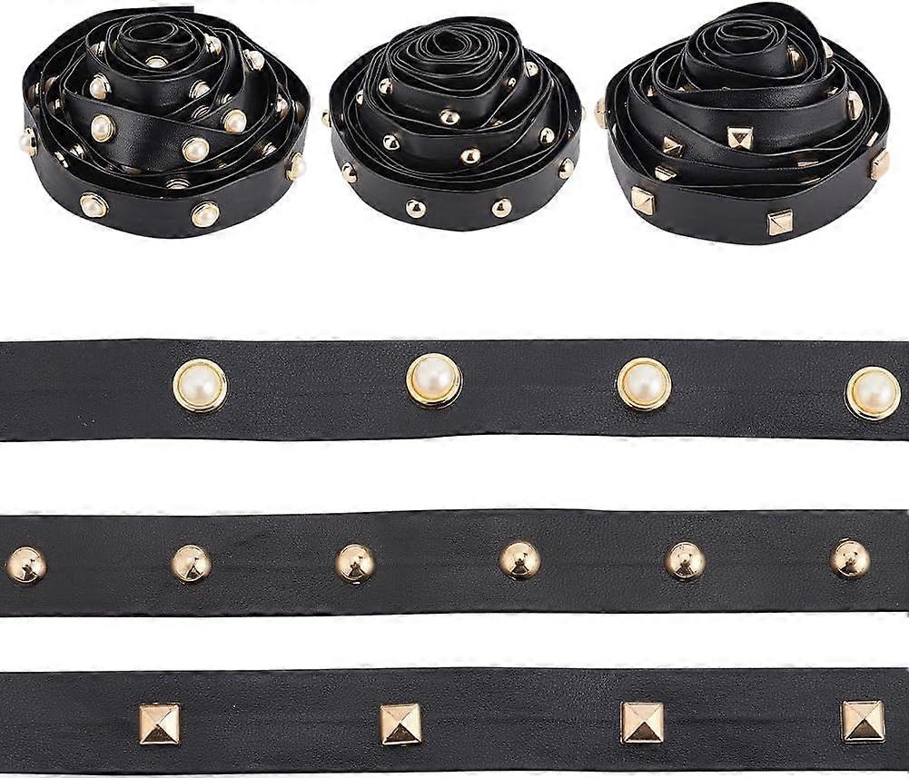8.8 Yards Black PU Faux Leather Lace with Rivets, 3 Styles: Round/Square Studs, Suede Cord for Jewelry, Bracelets, Sewing & Craft