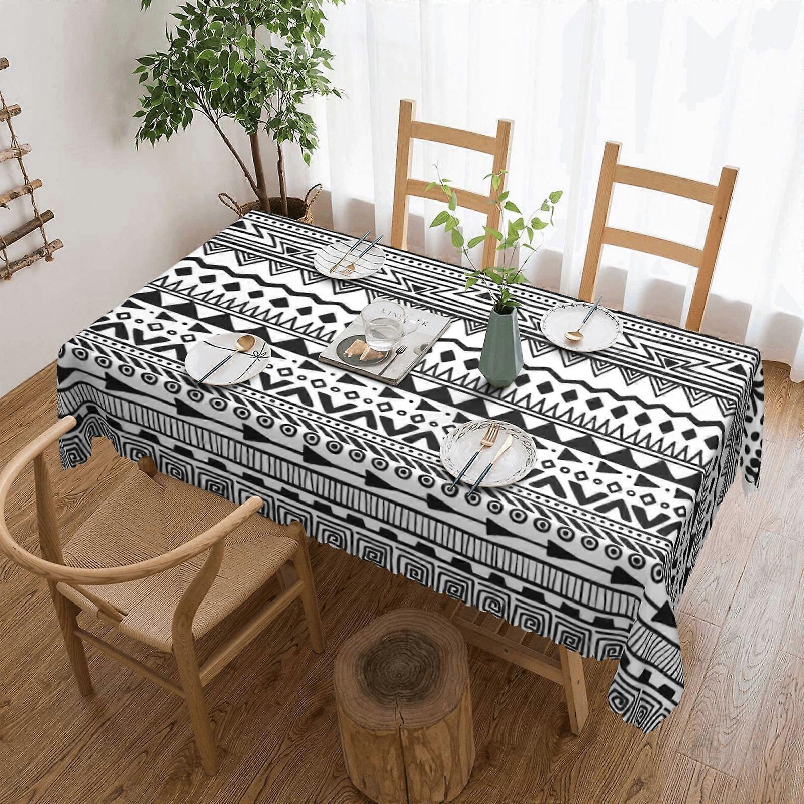 Tribal Print Black And White Aztec Pattern Boho Tablecloth, Water Resistance Spillproof Table Cloth For Thanksgiving/Christmas Family Tablecloth