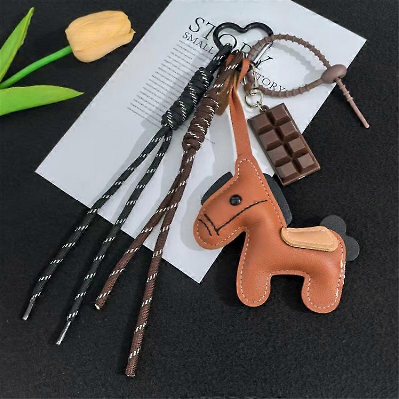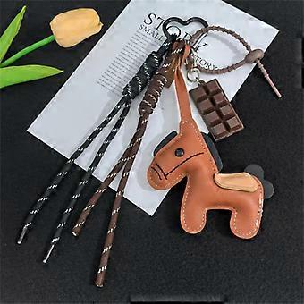 Cute Leather Pony Keychain Ornament Braided Rope Backpack Pendant For Phone Bag Hanging Accessories DIY Decoration