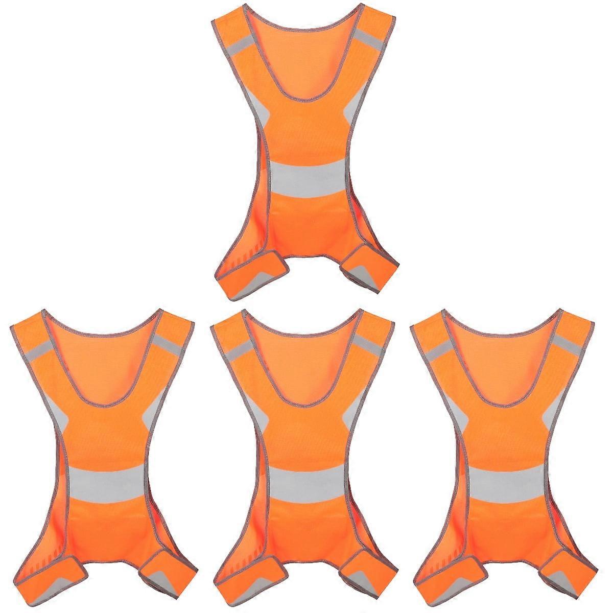 Cycling Reflective Vest Traffic Construction Polyester Cloth Hiking Safety Man Set of 4