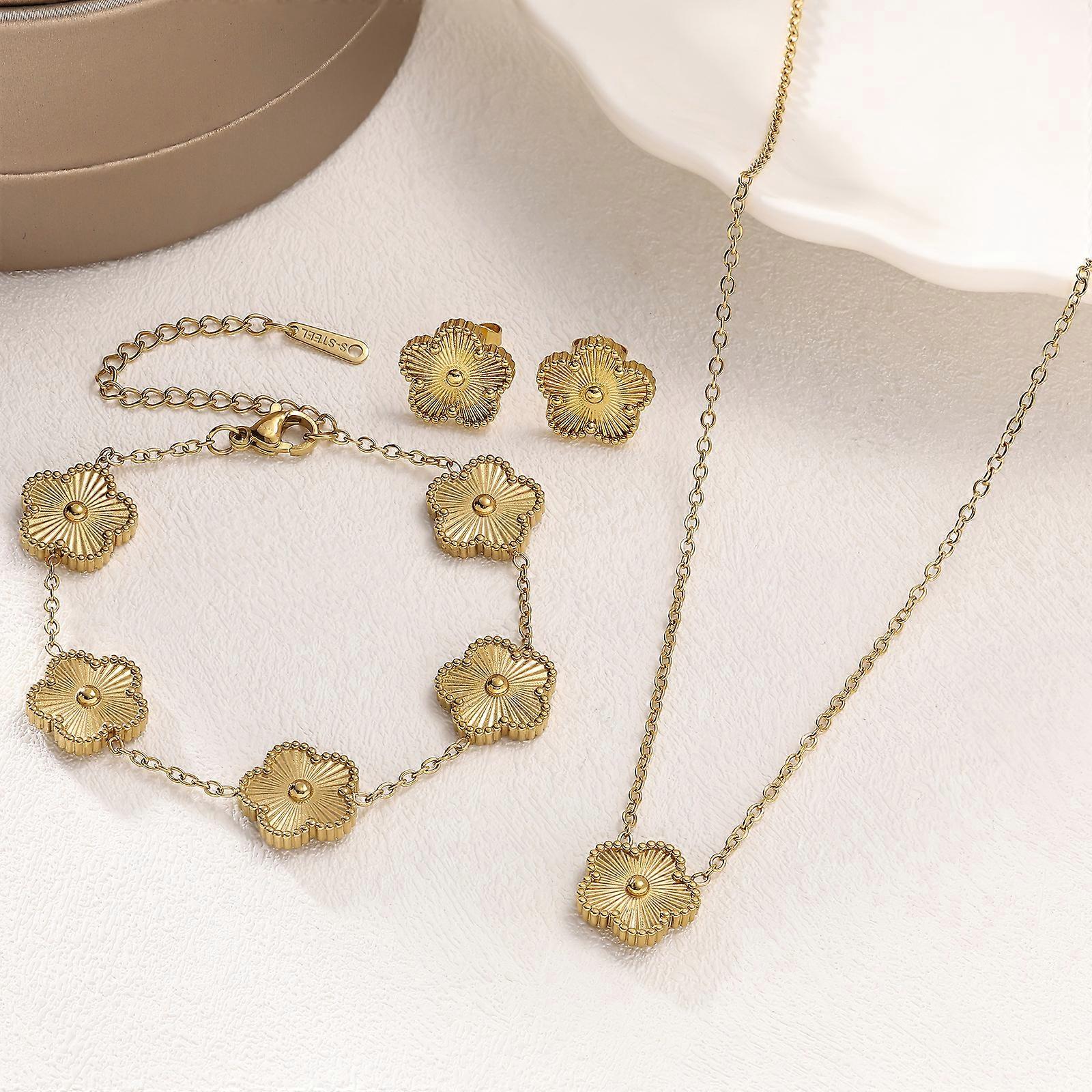 IFYOUOO Necklace Bracelet Earrings Set Luxury Plum Blossom Plant Five Leaf Flower for Women Gift Jewelry