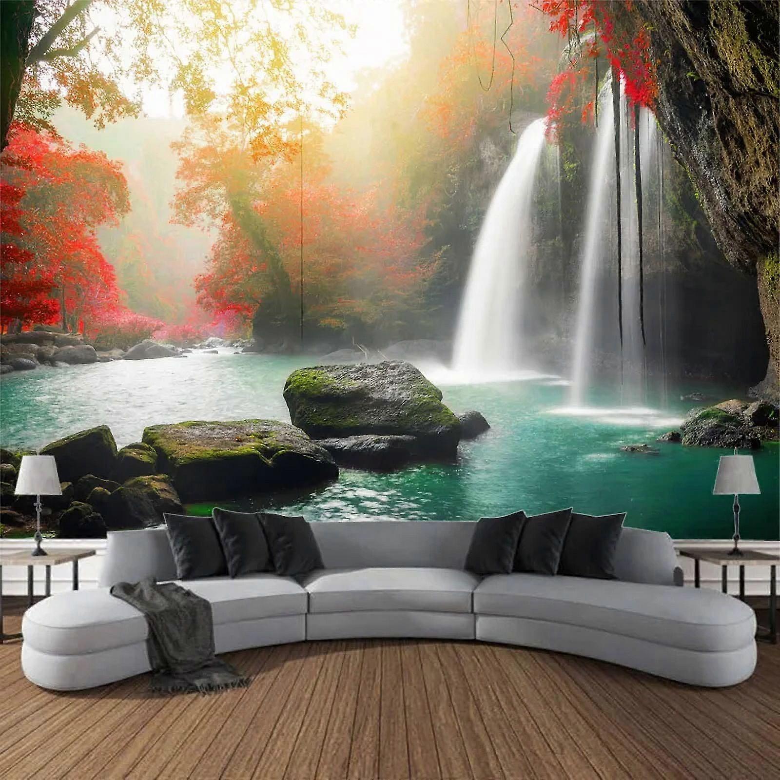 Natural landscape big tapestry beach picnic mat home wall art decoration sand forest waterfall living room wall hanging