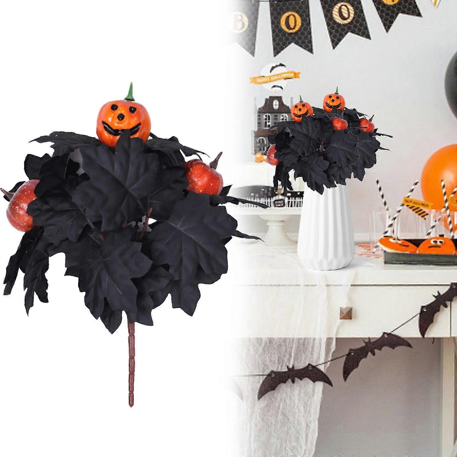 Halloween Pumpkin Branches with Black Maple Leaves Bouquet, Artificial Faux Twigs for Fall Vases, Floral Arrangement DIY Centerpiece