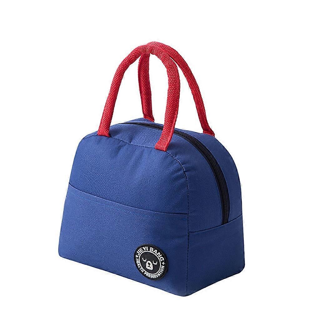 Navy Blue Striped Insulated Lunch Bag, Waterproof Oxford Cloth with Zipper, Compatible with Bento Box